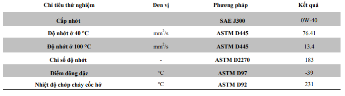• Khởi động lạnh dễ dàng: với cấp độ nhớt 0W-40 cùng với hệ phụ gia đặc biệt, giúp động cơ dễ dàng khởi động ở cả nhiệt độ rất thấp hoặc rất cao, lý tưởng cho hệ thống “start-stop” trên động cơ.